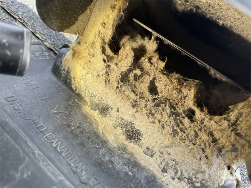 Additionally, blockages in dryer ducting can result in costly water damage. This often occurs when a blockage—whether from lint or a bird’s nest—causes moisture from the drying process to accumulate. Without a clear path for the lint and moisture to exhaust outdoors, the duct fills with water. At BF Power Vac, we frequently see this issue in multi-unit complexes like apartments and condos, where dryer ducts run between floors and through attic spaces to rooftops. The resulting water damage can impact numerous residents, leading to significant repair costs for property owners, along with lost revenue if the units must be vacated for repairs. Moreover, increased or redirected labor costs for reconstruction can detract from routine maintenance needs.